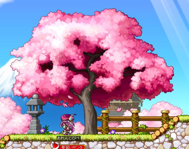武陵は中国をイメージしてある地方なのだと思うのですが、空や遠景の山が綺麗な場所です。武陵の空は、メイプルの空の中で上位に入る好きな空です。ここの雲は他のマップでもけっこう使いまわされているんですが、この空に浮いてるのが一番好きです。
