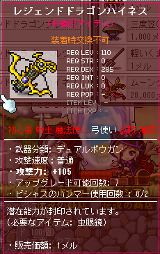 110になったので、久しぶりに武器強化をしてみました。