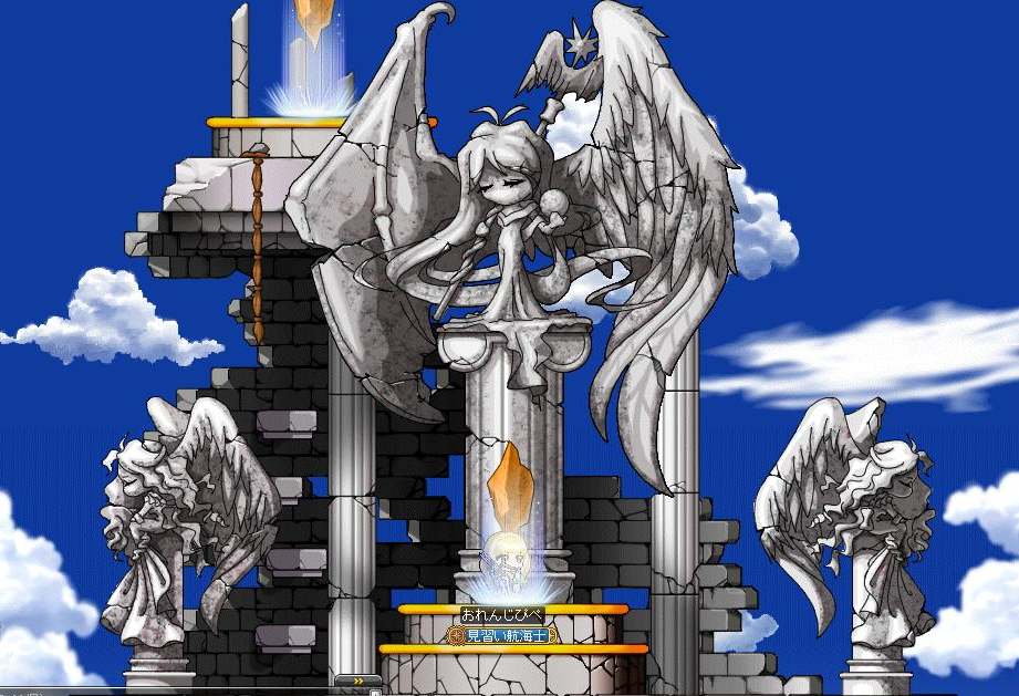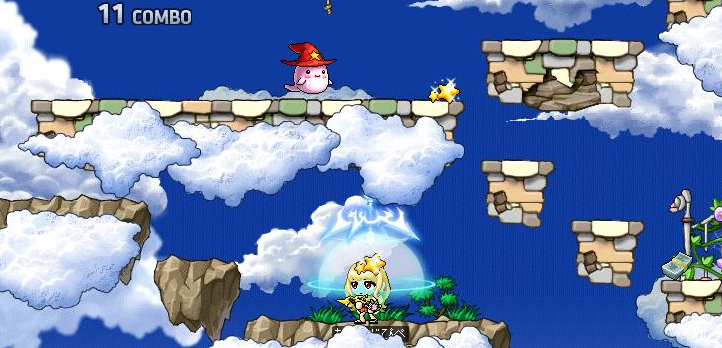 雲の公園って前からけっこう広めなマップだったと思うんですが、さらに広くなっていました。横に。グル狩り推奨のマップになっているのかな?大人数で狩ると楽しそうな地形でした。