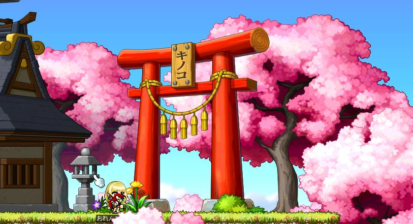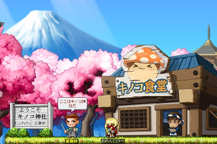メイプルの交通事情を知るために、キノコ神社へ初めて行ってみることにしました。