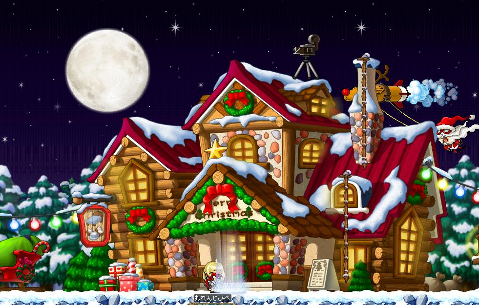 メイプルを始めた年のクリスマス、初めて幸福の村へ行った時はちょっと感動しました。期間限定の季節的なマップって新鮮で、もみの木に飾りつけしたり、楽しかったなーと思います。