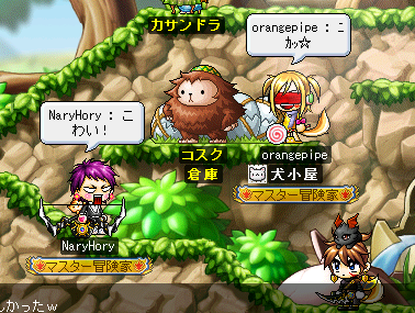 さらにさかのぼること日曜日、なしょさんにも久しぶりにお会いできて、それもまた嬉しかったりしました。私はマメではないもので、普段あまり連絡をとったりしないことのほうが多いんですが、メイプルの友達がたまにひょこっとログインしたりすると、安心するし嬉しいなと思います。実生活が忙しかったり時間が合わなかったりいろんな理由で会えない人はたくさんいるんですが、でも元気でいてくれるんだというのが分かるだけでほっとします。それぞれの生活の中で、メイプルの時間が重なるって少しの間だけかもしれないけど、元気でいてもらいたいと思います。