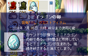 ミニドラゴンの卵はログイン時にもらえるようです(Lv10以上)。